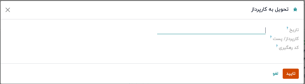 در صورت کلیک برروی دکمه ارسال پستی، پنجره پاپ اپ با مقادیر زیر نمایان میگردد: