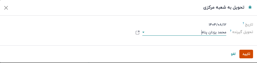 پس از تایید، مقادیر تحویل گیرنده و تاریخ تحویل در چک اپدیت خواهند شد.