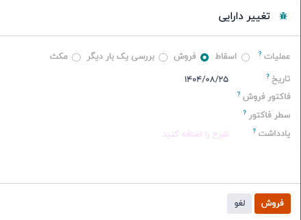 و فرم را مثل زمانی که یک دارایی جدید ثبت میکنید، پر کنید.