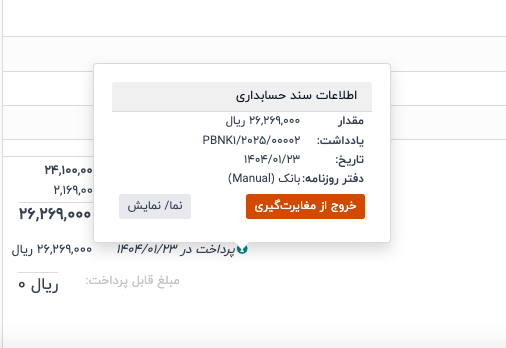 برای دیدن اطلاعات بیشتر مانند سند حسابداری مرتبط، روی نمایش کلیک کنید.