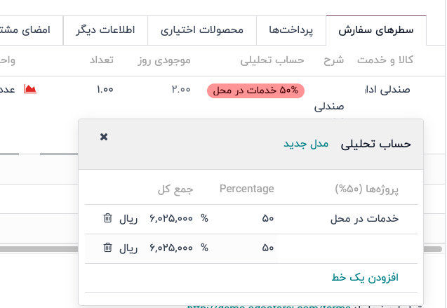 مدل حساب تحلیلی به ردیفهای انتخابشده اضافه میشود.