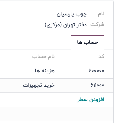 - روی افزودن سطر کلیک کنید و یک یا چند حساب را به این جایگاه اضافه کنید.